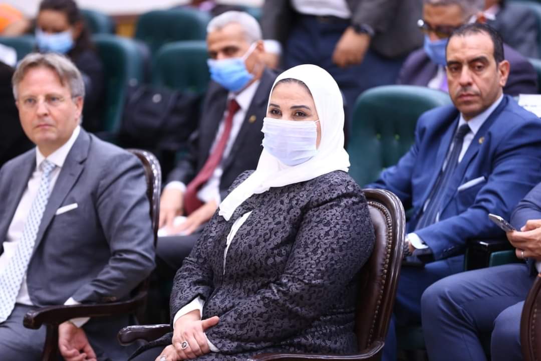 نيفين القباج وزيرة التضامن الاجتماعي تشهد المؤتمر الصحفي لافتتاح أول دار إيواء لضحايا جريمة الاتجار بالبشر في مصر.