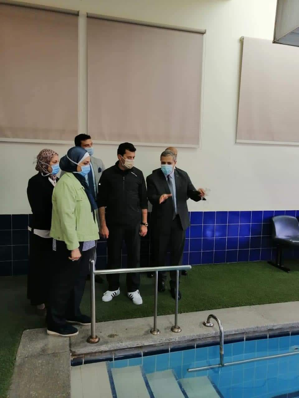 وتفقد وزير الشباب والرياضة، سير العمل فى العيادات الخارجية و أقسام العلاج الطبيعي والتأهيل والعلاج المائى والقياسات الفسيولوجيه والاسنان والعظام والباطنه والقلب والمعمل، وكذلك حمام السباحة.