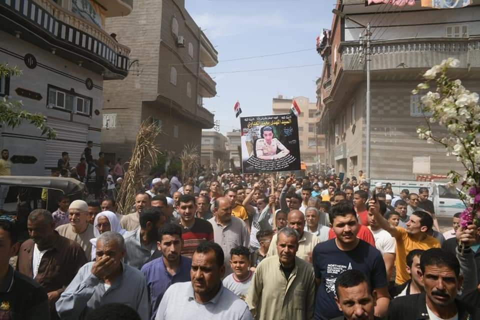 وعدد من قيادات القوات المسلحة وودعه الجميع الي مثواه الاخير بمقابر الاسرة بالقرية، وقد نقل نائب المحافظ خالص تعازي السيد الدكتور أيمن مختار محافظ الدقهلية لاسرة الفقيد الكريم وذويه وأبناء القرية داعيا المولي ان يتغمد الفقيد الكريم وجميع الشهداء بواسع الرحمات