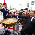 حيث تسلم محافظ مطروح الشعلة من الفارس رزق بو عبيد رئيس اتحاد فرسان مطروح وسط أجواء أحتفالية عقب ذلك