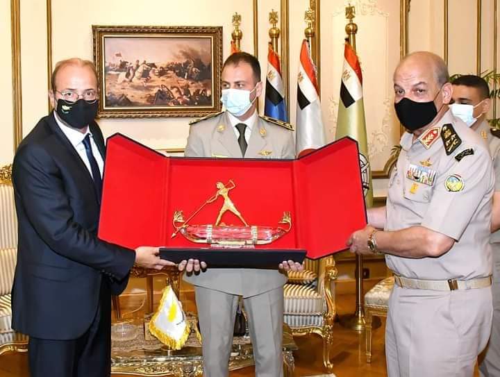 إلتقى الفريق أول / محمد زكى القائد العام للقوات المسلحة وزير الدفاع والإنتاج الحربى بالسيد / خارلامبوس بيتريدس وزير الدفاع القبرصى والوفد المرافق له على هامش زيارته الرسمية لمصر لحضور فاعليات إفتتاح قاعدة ” 3 يوليو ” البحرية .