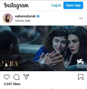 و علقت عليها قائلة: متحمسه و سعيده جدا بالعرض العالمي الاول لفيلم “اميره” للمخرج الصديق والفنان محمد دياب ومشاركته في مسابقه آفاق خلال مهرجان فينيسيا السينمائي