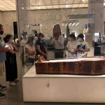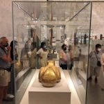 و داخل المتحف تم تقسيم الفوج المكون من ١١٤ سائح أسباني إلى ٦ مجموعات قاموا بجولة داخل قاعة العرض المركزي وقاعة المومياوات لمشاهدة روائع الحضارة المصرية العريقة، مشيدين بالاجراءات الاحترازية و ضوابط السلامة الصحية المطبقة في المنتجعات السياحية و المتاحف و المواقع الأثرية في مصر.