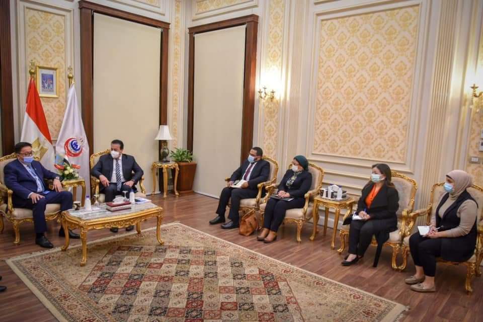 السفير الكازاخستاني يوجه الشكر للدكتور خالد عبدالغفار على مجهوداته في مجال الصحة ويؤكد أهمية الاستفادة من الخبرات المصرية في مجال تصنيع لقاحات فيروس كورونا