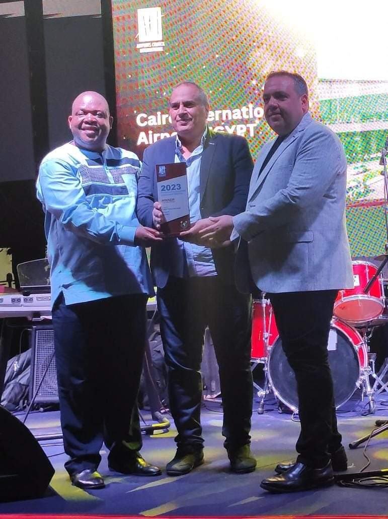 وقام إيمانويل تشافيز رئيس المجلس الدولي للمطارات لقارة افريقيا بتسليم الجائزة للملاح خالد الألفي مساعد رئيس مجلس إدارة الشركة المصرية القابضة للمطارات والملاحة الجوية.