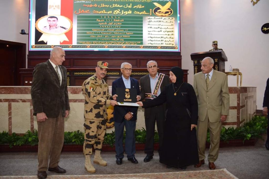 كما تم تكريم عدد من أسر الشهداء تقديراً لما قدموه من تضحيات فى خدمة الوطن .