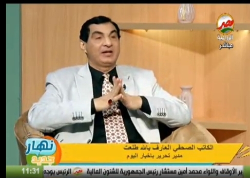 استضاف برنامج( نهار جديد )قناة مصر الزراعية الكاتب الصحفي العارف بالله طلعت مدير تحرير باخبار اليوم والحلقة من تقديم الإعلامية اسراء عادل مذيعة التليفزيون والإعلامي احمد سمير رئيس التحرير