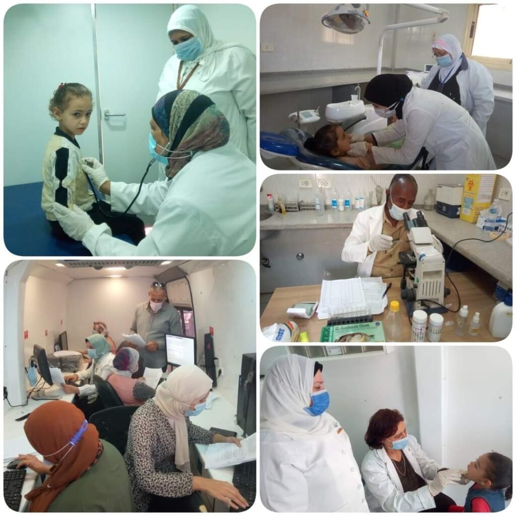 وتنوعت أعمال القافلة ما بين الكشف الطبي فى التخصصات المختلفة بالإضافة إلى وجود معملي دم وطفيليات وجهاز أشعة وكذلك عيادة الكشف المبكر للضغط والسكر ووجود لجنة لعمل التقارير العلاجية على نفقة الدولة، كذلك تقديم خدمة التثقيف الصحي للمواطنين المترددين على القافلة.