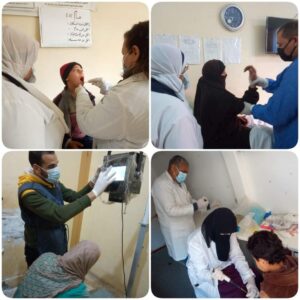 وقد ضمت القافلة عيادات متنقلة بكافة التخصصات الطبية وتم خلالها الكشف على ( 484 حالة باطنة – 218 حالة جراحة – 498 حالة أطفال – 161 حالة أنف وأذن – 22 حالة تنظيم أسرة – 135 حالة النساء والتوليد – 181 حالة مسالك – 69 حالة أسنان – 221 حالة عظام )، بالإضافة إلى عمل التحاليل الطبية اللازمة والأشعة وتقديم العلاج للحالات بالمجان مع عمل ندوات توعوية وتثقيفية لأهالي القرية مع إتخاذ كافة الإجراءات الوقائية والتدابير الإحترازية اللازمة .
