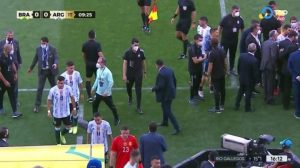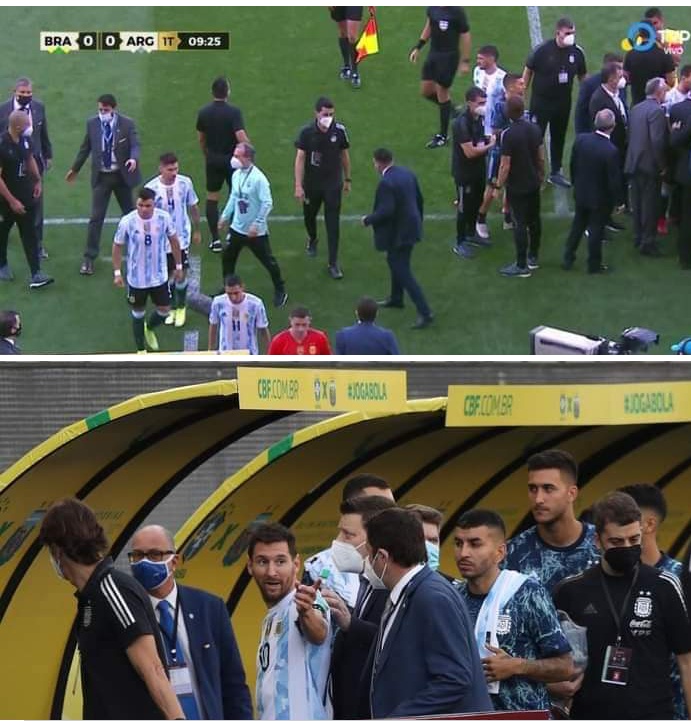 فى واقعة غريبة و مثيرة للجدل من قبل مسؤولي وزارة الصحة البرازيلية و الذين قاموا بالنزول إلى ملعب ” كورينثيانز أرينا ” بمدينة ساوباولو البرازيلية فى الدقيقة السابعة من عمر المباراة التى جمعت بين قطبي الكرة اللاتينية السيليساو البرازيلي و التانجو الأرجنتيني تصفيات أمريكا الجنوبية المؤهلة لمونديال قطر ( 2022 ) ، للمطالبة بخروج ( 4 ) لاعبين من المنتخب الأرجنتيني قد وصلوا إلى الأراضي البرازيلية قادمين من بريطانيا التي تدخل فى القائمة الحمراء فى جائحة كورونا .