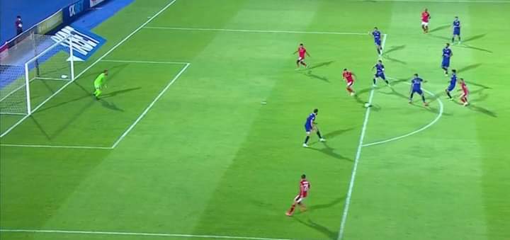 و بعد الهدف الثاني بأربع دقائق ، من كرة و لا أجمل من النجم ” قفشة ” ، يضرب العالمي ” حسين الشحات ” دفاعات الترجي و ينجو من مصيدة التسلل ليكتب الثلاثية في شباك الحارس ” معز بن شريفية ” .