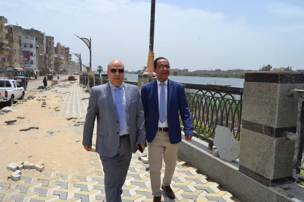 بالصور؛ إشراف ومتابعه على الطبيعة لمعدلات التنفيذ لمراحل تطوير وتحديث كورنيش النيل والشارع الرئيسي