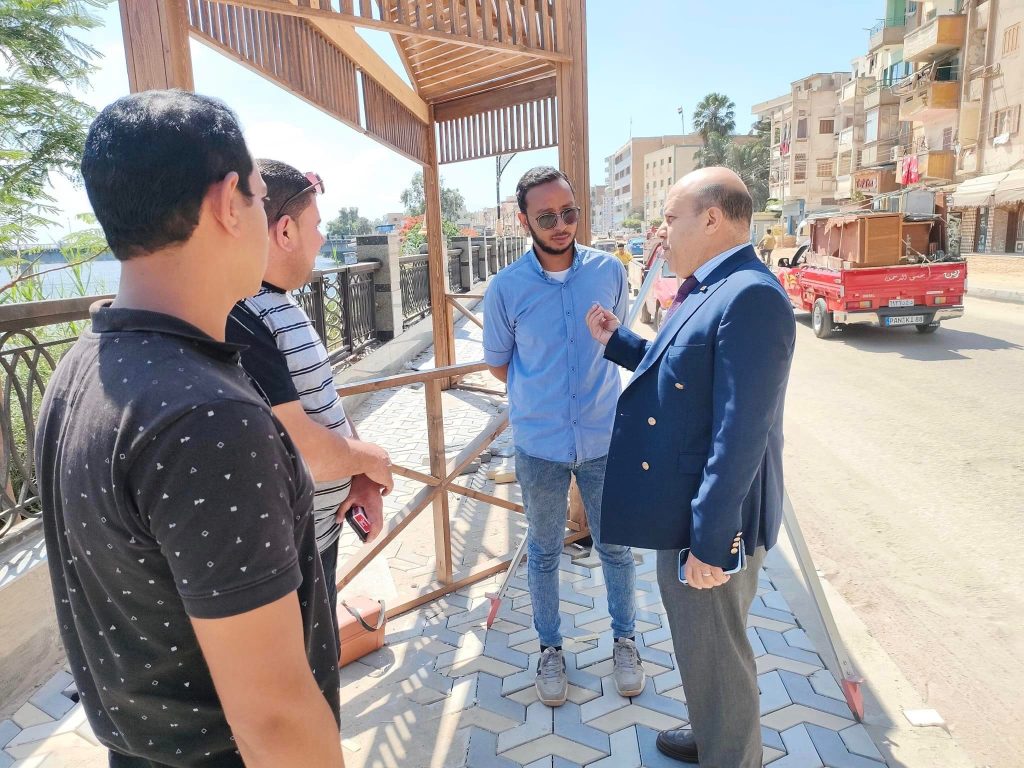 واستمرار لتركيب بلاطات الإنترلوك ، والإطمئنان على إنتظام العمل مع التأكيد على سرعه الإنتهاء من الأعمال الجارية لتسليم الكورنيش لإحداث نقله حضاريه داخل المدينه ، كما تابع إنشاء برجولات خشبية مزودة بمقاعد للجلوس وأعمدة إناره ديكوريه ، بالإضافة إلي تطوير الأرصفة الجانبية وتزويدها بالإنارة لتحسين مستوى المظهر الجمالي وجعله متنفسا حضاريا يستوعب المواطنين ٠٠