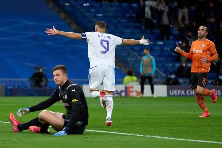 فقد نجح النجم الفرنسي ” كريم بنزيما ” فى تسجيل هدفي الريال فى المباراة ، و نجح فى تسجيل الهدف رقم ( 1000 ) لريال مدريد فى دوري أبطال أوروبا ، ففى الدقيقة السادسة عشر من عمر المباراة ، من ضغط من النجم ” فينيسيوس جونيور ” على دفاع شختار دونستيك لإستخلاص الكرة ، كي يمرر الكرة إلى ” بنزيما ” و الذى ينفرد بمرمى الحارس ” أناتولى تروبين ” ليفتتح أهداف المباراة بالهدف الأول لصالح الميرينجي .