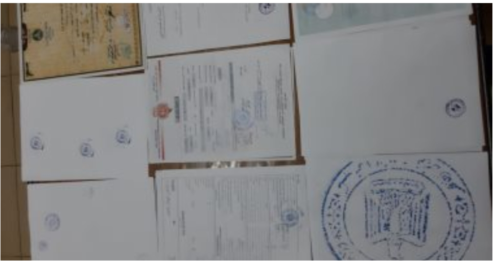 تم إستهدافه وأمكن ضبطه ، وبحوزته (38 شهادة مخالصة مزورة بالكامل منسوب صدورها إلى إحدى الجهات الحكومية