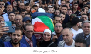 إن الرأي العام العالمي تابع بغضب شديد الإعتداء الهمجي لقوات الإحتلال الإسرائيلي على موكب تشييع جثمان الشهيدة شيرين أبو عاقلة أثناء خروج الجثمان من المستشفي