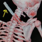 و تم بنجاح استخراج الالة الحادة (مقوار ) الذى كان مزوداً بتعرجات و بروز مدببه و حادة ادت الى اشتباك الاله الحادة مع الضفيرة العصبية الامر الذى قد زاد من صعوبة الجراحة