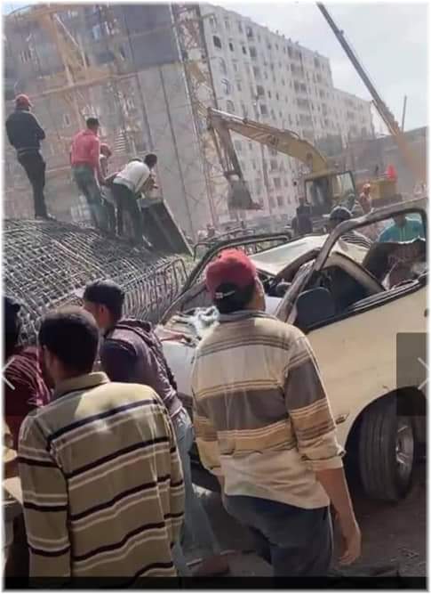 انهيار سقالات عمود خرساني من كوبري تحت الإنشاء بمنطقة المريوطية