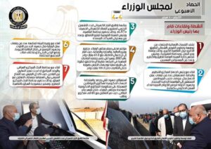 بالإنفوجراف الحصاد الأسبوعي لمجلس الوزراء خلال الفترة من 29يناير حتى 4 فبراير 2022.