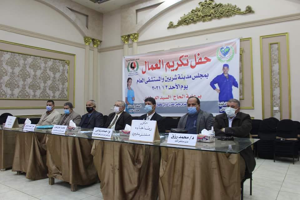 جميع عمال مجلس المدينة وعمال مستشفى شربين العام وفي بداية الحفل