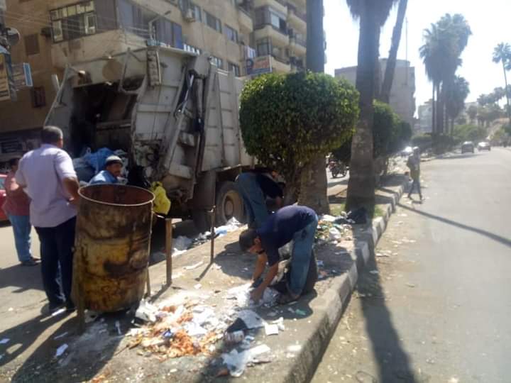 بالصور : رئاسة حى غرب المنصورة تواصل جهودها برفع تجمعات القمامة بنطاق الحى