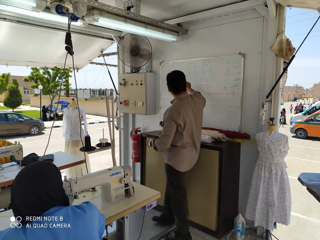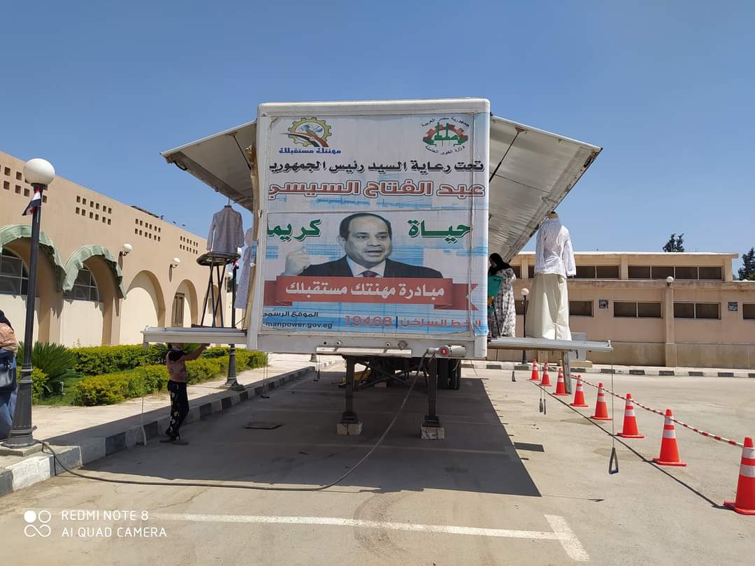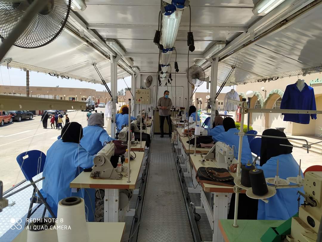 لليوم الثاني على التوالي تتوافد الفتيات علي المراكز التدريبية المتنقله والتي تقوم على تدريبهم علي المهن وتأهيلهم للالتحاق بسوق العمل ويقوم فريق من المدربين بدورات تدريبية في جميع التخصصات