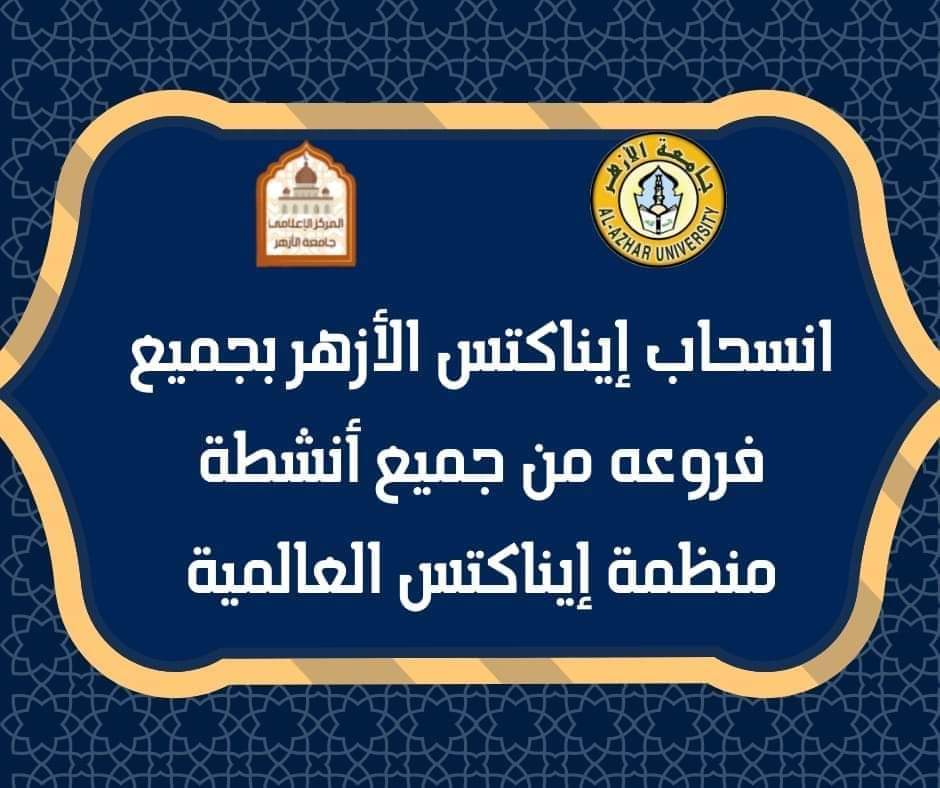 وانطلاقًا من مبادئ ديننا الإسلامي الذي يحرص الأزهر الشريف على حفظه وحمله إلى بني البشر بصورته الكاملة الصحيحة التي لن تتبدل بوعد الله لنا؛ يعلن فريق (إيناكتس جامعة الأزهر) انسحابه من جميع الأنشطة والمسابقات التي تُنظّم تحت رداء المؤسسة