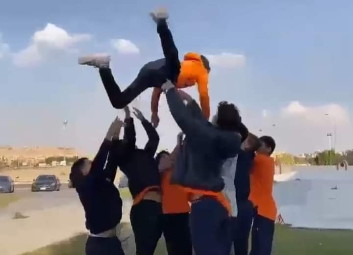 وشهدت إحدى المدارس بمصر حادثة مروعة بسبب تحدي القفز لأعلى وهو تحد يكون عن طريق أن يحمل مجموعة من الشباب شخص آخر ويلقوه لأعلى ويتركوه ينزل على الأرض.