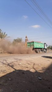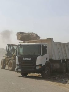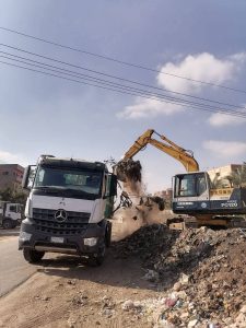 وتم رفع مخلفات بلدية وتجمعات قمامة ونواتج هدم ورفع كافة المخلفات من جانبي الطريق