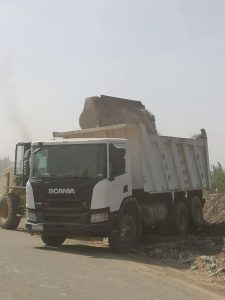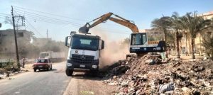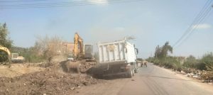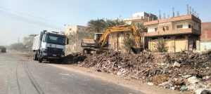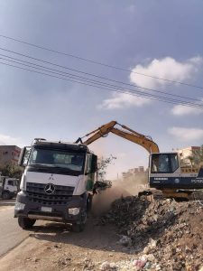 وتم رفع مخلفات بلدية وتجمعات قمامة ونواتج هدم ورفع كافة المخلفات من جانبي الطريق