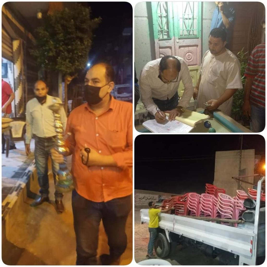 كما تم تحرير 13 محضر لعدم ارتداء الكمامة ومصادرة 3 شيش بكوم حمادة .