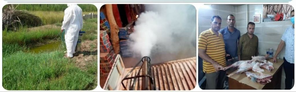 مواصلة أعمال الرش والتطهير بنطاق الوحدة المحلية لقرية النجيلة، وكوم شريك .