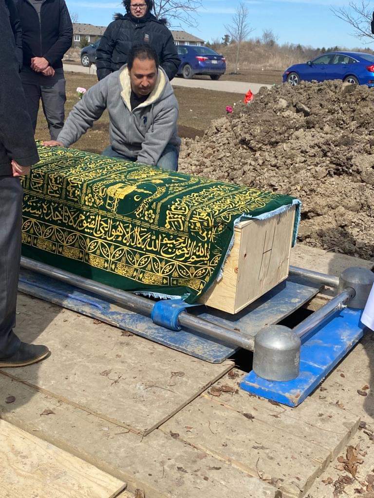 ووارى جثمانها الثرى بعد صلاة الجنازة في مقبرة قريبة بمدينة “أجاكس” بحضور عدد كبير من الجالية المصرية وأفراد عائلة الفقيدة.