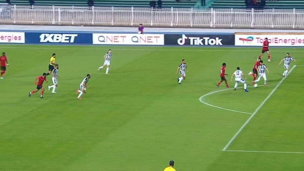 وفي الدقيقة 44 وقبل نهاية الشوط الأول أحرز اللاعب احمد الكندوسي هدف التعادل بعدما راوغ دفاع الأهلي وأطلق قذيفة علي محمد الشناوي وترتطم بالعارضة قبل أن تسكن الشباك ، وتصبح النتيجه 1/1 .
