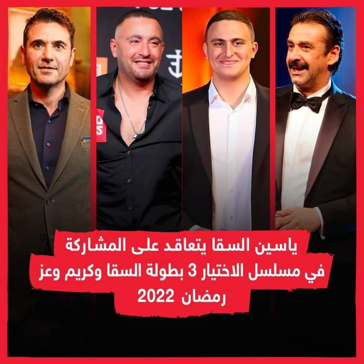 وحصل موقعنا على معلومات أن ياسين السقا تعاقد على المشاركة في مسلسل الاختيار 3 بطولة أحمد السقا وكريم عبدالعزيز وأحمد عز، ومن تأليف هاني سرحان وإخراج بيتر ميمي، ويجسد أحمد السقا شخصية ضابط، أما كريم عبدالعزيز فيظهر بنفس شخصية العام الماضي زكريا ضابط في الأمن الوطني، وأحمد عز فيقدم شخصية سيف الضابط في جهاز المخابرات العامة، ومن المفترض أن يعرض المسلسل في موسم رمضان 2022.