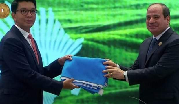 كما تسلم الرئيس عبد الفتاح السيسي، أدوات سلطة القمة ورئاستها من رئيس مدغشقر أندريه راجولينا.