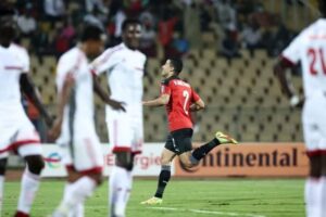 و تأتى رأسية المهاجم ” مصطفى محمد ” و التى كانت بمثابة هدف محقق و التى تصدى لها الحارس ” محمد المصطفى ” من