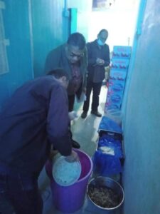 وبالمرور علي المخابز وجد مخالفة “وزن” باحد المخابز البلدي في منطقة ميت حدر .