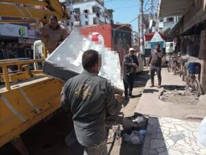 حيث تم ازالة عدد 17 اعلان عشوائى وغير مرخصة وتم اتخاذ الاجراءات القانونية حيال المخالفين.