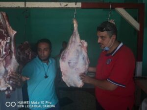 وتم التحفظ علي 265كجم لحوم وتحرير 9 محاضر صحية وبيئية نقص اشتراطات صحية .