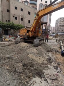 وتابع مهندسي شركة المياه صب غرف المحابس وعمل قطعية لمحابس التحكم علي خط 8بوصه