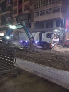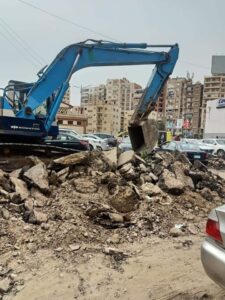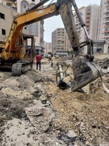 جاري الإخلاء حول كابلات الكهرباء والتليفون وحول خطوط الغاز والمياه.