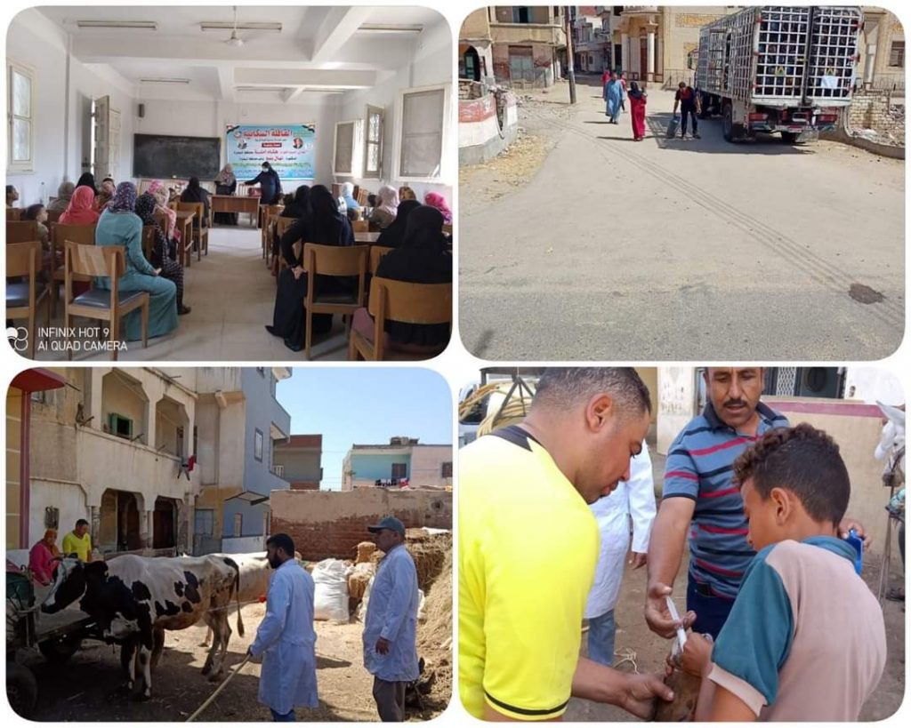 الطب البيطري : تم رش 250رأس أبقار و50رأس جاموس و200 رأس أغنام، بالإضافة إلى الكشف على ( 79أبقار – 50 جاموس 20 أغنام ) .