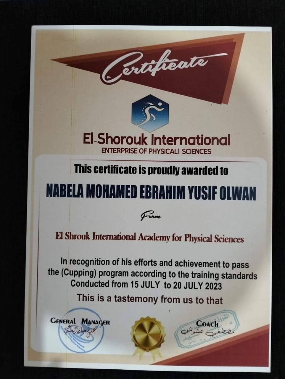 _حاصله علي كورس الحجامه