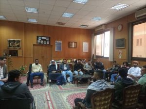 و على هامش الملتقى إلتقى السيد عميد الكلية والسيد منسق الطلاب الوافدين بالكلية و السيد المشرف العام على الوافدين بالطلاب و عرض فيه المشرف العام على الوافدين الخدمات التى تقدمها إدارة و نادى الطلاب الوافدين مؤكدا أهمية مثل هذه اللقاءات و هذه الفعاليات و دعا الطلاب للإندماج بصورة فعالة داخل المجتمع الجامعى والنشاط الطلابى و دعا الكليات لتحذو حذو كلية الطب البيطرى فى التفاعل النشط مع الطلاب الوافدين ،كما حرص الطلاب على إلتقاط الصور التذكاريه مع الحضور.
