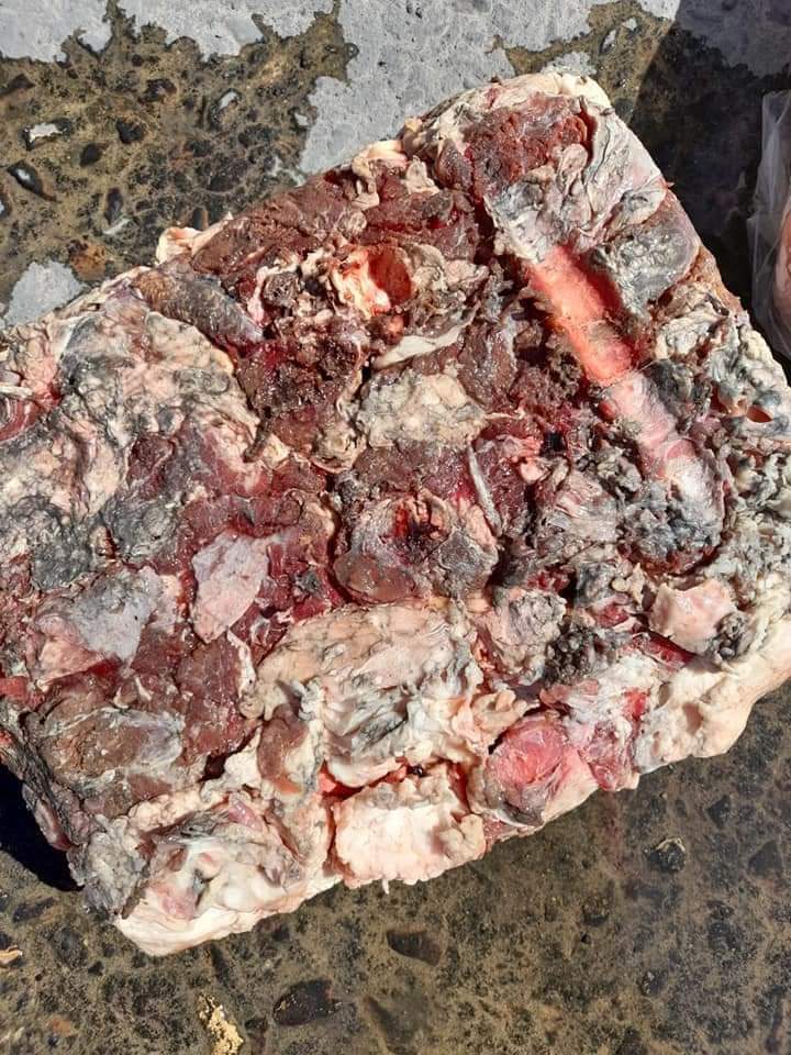 وتم تشكيل لجنة ضمت محمد زهران رئيس الإيداع وإسلام يس وعلى الدله مأموري الحركة ووليد الخطيب مدير تعريفة ومحمد السيد أمن جمركي وصلاح محمود وعوني العمري مفتشي لكشف ومعاينة المشول فتبين وجود 429 كرتونة بوزن 8 طن و580 كيلوجرام لحوم جاموسى بمقدمة الحاوية وفى الخلف 971 كرتونه بوزن 19طن و 420 كيلو جرام لحوم تريمنج «بقايا اللحوم» محظور استيرادها .