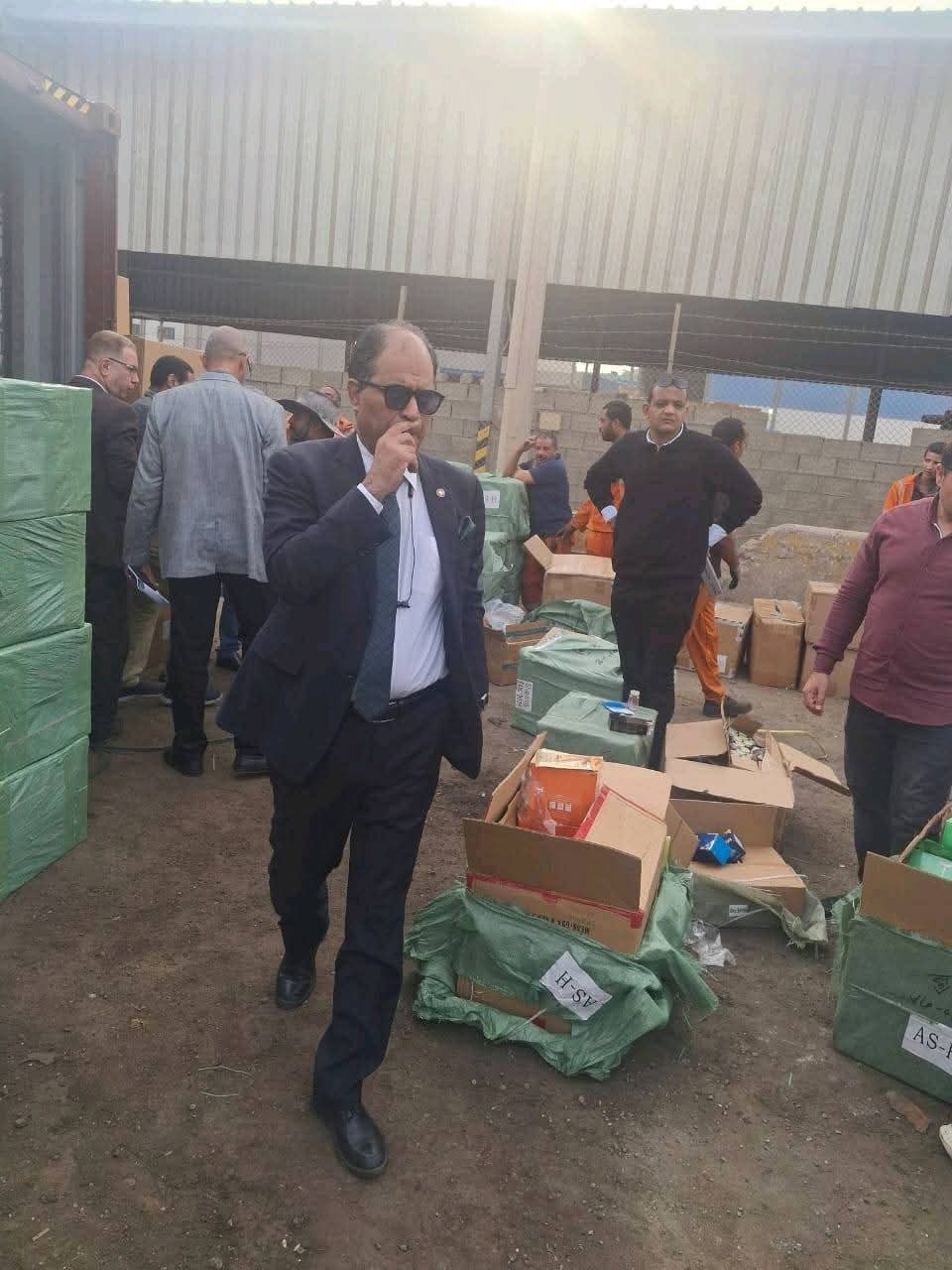 وتم تشكيل لجنة مشتركة من الحركة والتعريفة، برئاسة مجدي محمد رضا مدير جمرك السخنة، من محمد عبدالمنعم وخالد إبراهيم وعادل عبد القادر وعماد حبشي وأحمد فريد وإسراء خالد وبسمة فاضل ومصطفى محمد من إدارة الحركة لكشف المشمول بحضور زياد محمد وحسن سهري بالأمن الجمركى ومحمد عباس ومحمود شعبان ونصر عبدالله بمكافحة التهرب الجمركي وخالد زيدان وآية الله سعيد من إدارة التعريفة ، فتبين وجود كميات كبيرة ومتنوعة من الأصناف المحظورة، شملت (ألعاب نارية – صواريخ – شماريخ _ صواعق كهربية – كاميرات تجسس- أجهزة لاسلكية- منشطات جنسية- مستحضرات تجميل- تيل فرامل- مستلزمات طبية أخرى متنوعة )