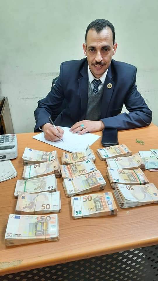 وتم تشكيل لجنة من مصطفى الفخرانى وأحمد عبدالحى مأمور التفتيش تحت إشراف محمود فتحى رئيس قسم تفتيش الركاب بحضور أحمد شبل رئيس قسم الأمن الجمركى لتفتيش حقائب الراكب فتبين وجود مبلغ 67000 يورو مخبأة بقاع سحرى بأحد الحقائب .