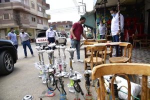 وخلال الجولة وجه المحافظ بغلق عدد من المقاهي والكافتيريات لتقديمها الشيشة وعدم إتباع القواعد والإجراءات الاحترازية الخاصة بفيروس كورونا، حيث تم مصادرة عدد ٤٠ شيشة بنطاق مركز المحلة، كما وجه برفع كافة الإشغالات التي تعيق الطريق ورفع كافة المخلفات.