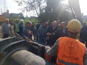 حيث تابع نائب المحافظ ميدانيا أعمال تنفيذ مأخذ محطة مياة الشرب من نهر النيل والكوبري المعدني